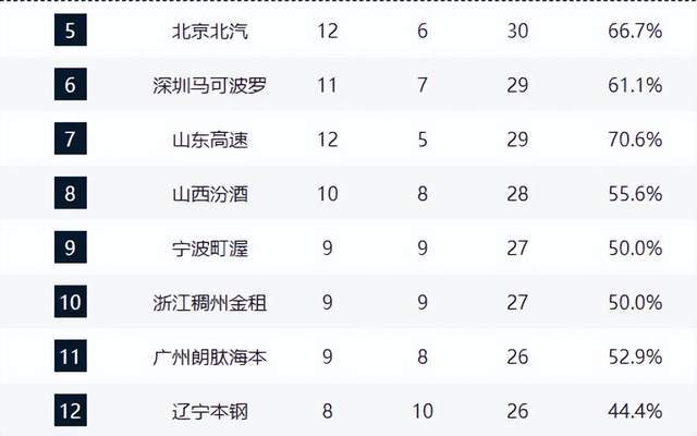 广厦领跑,广东第3,山东崛起逼近前4,辽宁跌至第12,2黑马很稳