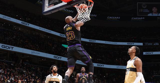 北京时间2月1日,洛杉矶湖人以142-111大胜华盛顿奇才的比赛中,勒布朗·詹姆斯频频送上暴扣,这位41岁的老将用行动证明,他依然能轻松飞到篮筐之上。